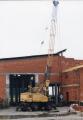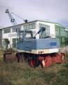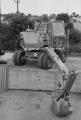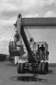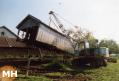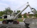 ein Fuchs 400 mit hydraulisch klappbarem Ausleger in der Garage.